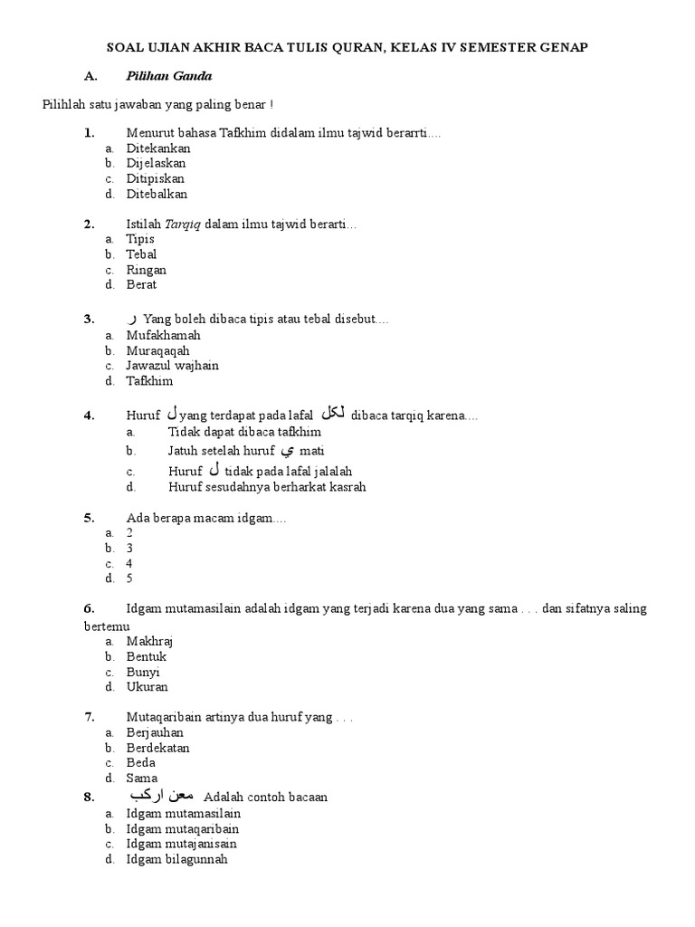 Soal Ujian Tajwid Pdf from imgv2-2-f.scribdassets.com Check spelling or type a new query. Maybe you would like to learn more about one of these? Soal ilmu tajwid pilihan ganda dan jawabannya. We did not find results for: